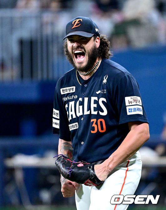 4일 서울 고척스카이돔에서 ‘2025 신한 SOL Bank KBO리그’ 키움 히어로즈와 한화 이글스의 경기가 열렸다.홈팀 키움은 라울 알칸타라, 방문팀 한화는 코디 폰세를 선발로 내세웠다.5회말 무사 1루 상황 키움 전태현의 번트 타구를 병살로 이끈 한화 선발 폰세가 포효하고 있다. 2025.07.04 / dreamer@osen.co.kr 4일 서울 고척스