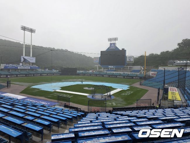 17일 대구삼성라이온즈파크에서 열릴 예정인 프로야구 삼성 라이온즈와 키움 히어로즈의 시즌 9차전이 비로 연기될 가능성이 커졌다. 오후 2시 30분 현재 대구삼성라이온즈파크 그라운드 전부가 물웅덩이다. 이날 대구에는 오전부터 많은 양의 비가 내렸다. 대구삼성라이온즈파크 그라운드에는 방수포가 설치됐지만 내리 비의 양의 워낙 많았다. 방수포 위에 물이 고였고 그