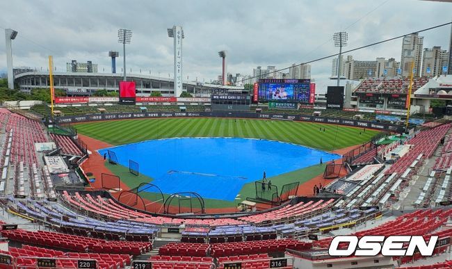 수원 비 그쳤지만, 흠뻑 젖은 그라운드+19시 물폭탄 예보…한화-KT전 정상 개최 가능할까 [오!쎈 수원]
