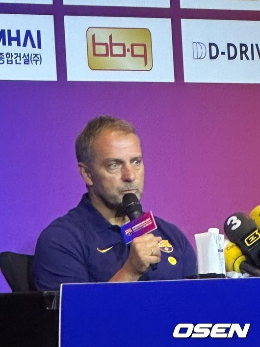 [사진] 공식기자회견에 참석한 한지 플릭 로날드 아라우호(26, 바르셀로나)의 이적 이야기가 나오자 바르셀로나 감독도 당황했다. 바르셀로나는 31일 서울월드컵경기장에서 FC서울과 맞대결을 앞두고 있다. 바르셀로나는 30일 오후 서울 당주동 포시즌스 호텔에서 FC 바르셀로나 2025 아시아 투어 에디션 공식기자회견을 진행했다. 라민 야말 등 세계적인 선수들이