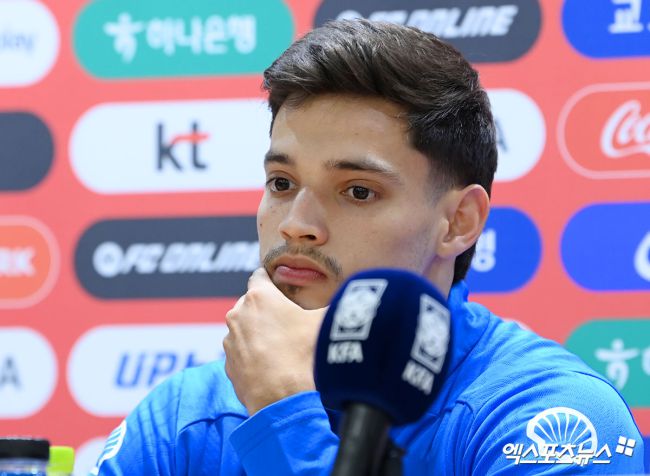 한국과의 A매치를 앞둔 파라과이 축구대표팀 미드필더 다미안 보마디야가 13일 오후 경기도 고양종합운동장에서 열린 기자회견에서 질의응답 시간을 갖고 있다. 고아라 기자 iknow@xportsnews.com