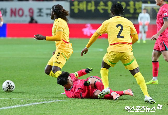18일 오후 서울월드컵경기장에서 열린 대한민국과 가나의 축구 대표팀 평가전, 대한민국 손흥민이 파울을 당하고 있다. 김한준 기자 kowel@xportsnews.com