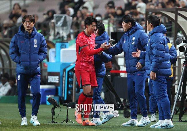 한국과 가나의 친선 경기가 18일 오후 서울월드컵경기장에서 열렸다. 후반전 손흥민이 교체되고 있다. <저작권자 ⓒ SPOTV NEWS. 무단전재 및 재배포 금지>