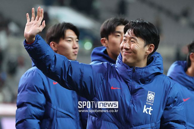 한국과 가나의 친선 경기가 18일 오후 서울월드컵경기장에서 열렸다. 1-0으로 승리한 손흥민이 팬들에게 인사를 하고 있다. <저작권자 ⓒ SPOTV NEWS. 무단전재 및 재배포 금지>