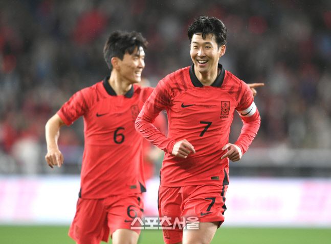 손흥민이 24일 울산문수축구경기장에서 열린 콜롬비아와 축구 국가대표 평가전에서 골을 넣은 후 환호하고 있다. 2023. 3. 24. 울산 | 최승섭기자 thunder@sportsseoul.com [기사제보 news@sportsseoul.com] Copyright ⓒ 스포츠서울&sportsseoul.com