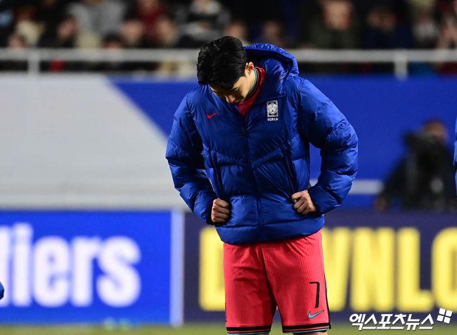 25일 오후 수원월드컵경기장에서 열린 '2026 국제축구연맹(FIFA) 북중미 월드컵' 아시아 3차 예선 B조 8차전 대한민국과 요르단의 경기, 1:1의 스코어로 무승부를 기록했다. 경기 종료 후 한국 손흥민이 아쉬워하고 있다. 박지영 기자 jypark@xportsnews.com