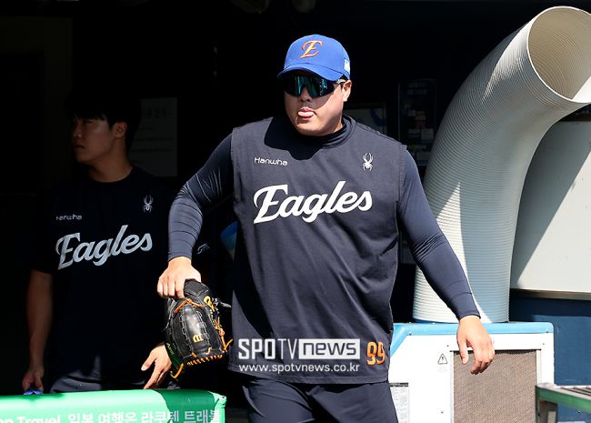 2025 신한 SOL Bank KBO리그 LG 트윈스와 한화 이글스의 경기가 10일 오후 서울 송파구 잠실야구장에서 열린다. 한화 류현진이 훈련을 나서고 있다. <저작권자 ⓒ SPOTV NEWS. 무단전재 및 재배포 금지>