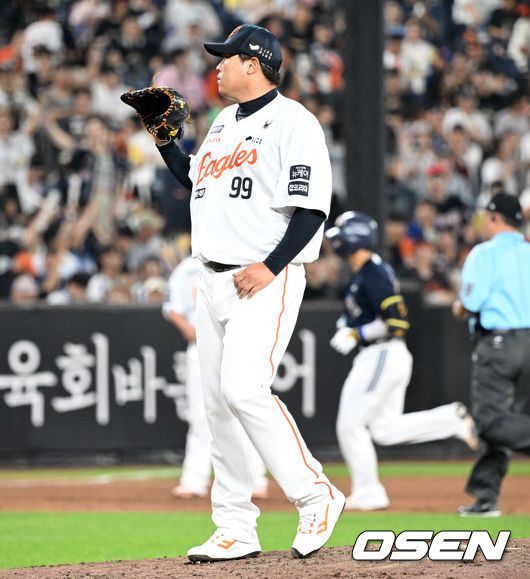 21일 오후 대전 한화생명볼파크에서 2025 신한 SOL Bank KBO리그 한화 이글스와 두산 베어스의 경기가 열렸다. 한화는 류현진, 두산은 콜어빈을 선발로 내세웠다. 4회초 무사에서 두산 강승호에게 우중월 솔로 홈런을 허용한 한화 류현진이 아쉬워하고 있다. 2025.08.21 /sunday@osen.co.kr