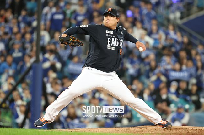 2025 신한 SOL뱅크 KBO 포스트시즌 삼성과 한화의 플레이오프 3차전이 21일 오후 대구 삼성라이온즈파크에서 열렸다. 한화 선발 류현진이 역투하고 있다. <저작권자 ⓒ SPOTV NEWS. 무단전재 및 재배포 금지>