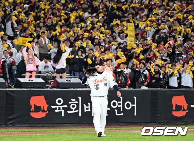 31일 대전 한화생명볼파크에서 2025 신한 SOL Bank KBO리그 포스트시즌 한국시리즈 5차전 한화 이글스와 LG 트윈스의 경기가 열렸다. 이날 경기에 한화는 문동주를, LG는 톨허스트를 선발투수로 내세웠다. 9회초 1사 1루에서 한화 류현진이 LG 구본혁에게 안타를 허용하고 아쉬워하고 있다. 2025.10.31 /sunday@osen.co.kr