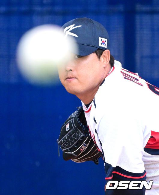 2026 WBC(월드베이스볼클래식)를 준비하는 대한민국 야구 대표팀이 27일 일본 오키나와 가데나 야구장에서 훈련을 펼쳤다. 야구 대표팀은 KT와 오키나와에서의 마지막 연습경기를 가지려 했으나 우천으로 취소돼 훈련만 진행했다. 대표팀 류현진이 불펜 피칭을 펼치고 있다. 2026.02.27 / dreamer@osen.co.kr