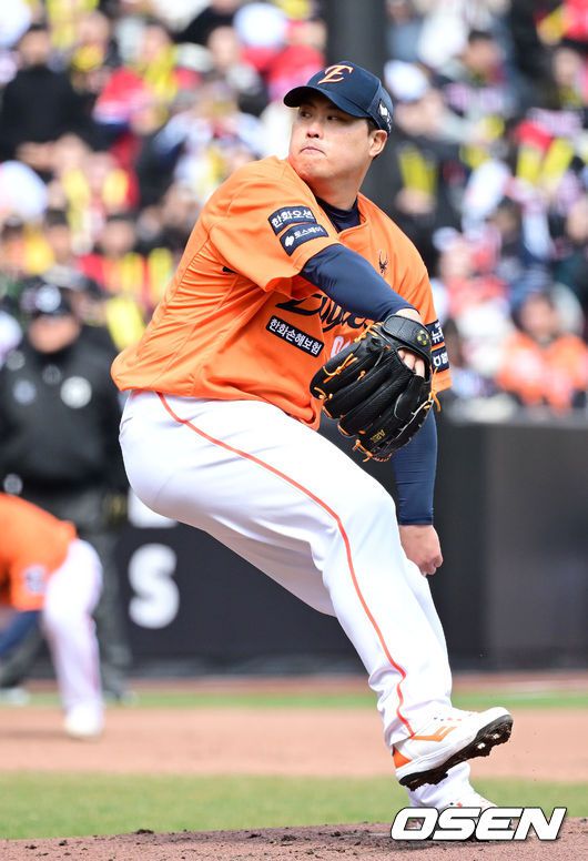 30일 대전한화생명볼파크에서 ‘2025 신한 SOL Bank KBO리그’ 한화 이글스와 KIA 타이거즈의 경기가 열렸다. 홈팀 한화는 류현진, 방문팀 KIA는 아담 올러를 선발로 내세웠다. 2회초 한화 선발 류현진이 힘차게 공을 뿌리고 있다. 2025.03.30 / dreamer@osen.co.kr