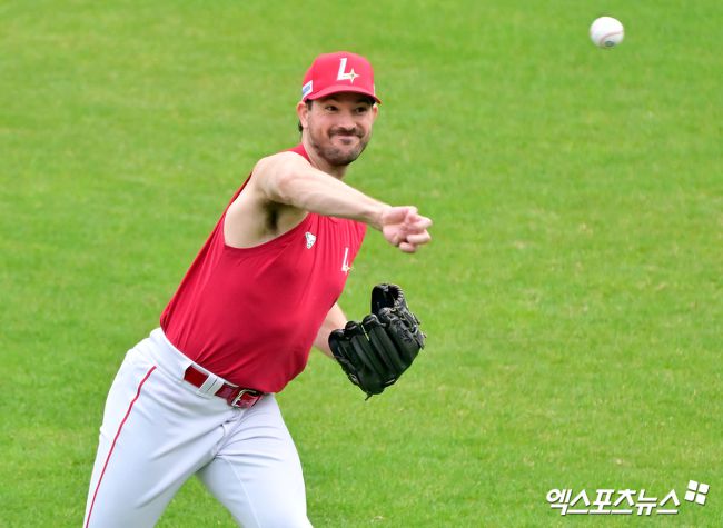 17일 오후 인천SSG랜더스필드에서 열리는 '2025 신한 SOL Bank KBO리그' 한화 이글스와 SSG 랜더스의 경기, SSG 앤더슨이 캐치볼을 하고 있다. 김한준 기자 kowel@xportsnews.com