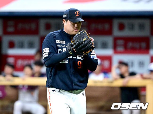 5일 서울 고척스카이돔에서 ‘2025 신한 SOL Bank KBO리그’ 키움 히어로즈와 한화 이글스의 경기가 열렸다. 홈팀 키움은 라클란 웰스, 방문팀 한화는 류현진을 선발로 내세웠다. 4회말 2사 2, 3루 상황 키움 박수종을 내야 땅볼로 이끌며 실점없이 이닝을 막아낸 뒤 더그아웃으로 향하고 있다. 2025.07.05 / dreamer@osen.co.kr