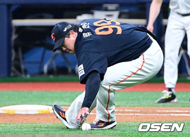 [사진]최주환 땅볼 타구 잡아내는 류현진