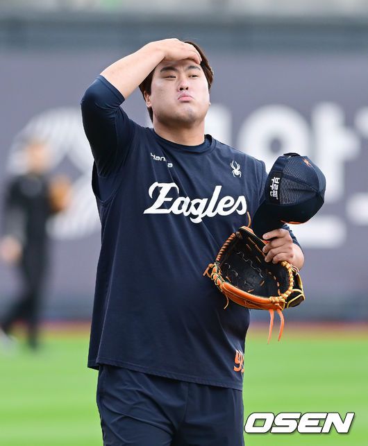 19일 오후 수원 KT위즈파크에서 ‘2025 신한 SOL Bank KBO리그’ KT 위즈와 한화 이글스의 경기가 열렸다. 홈팀 KT는 헤이수스, 방문팀 한화는 와이스를 선발로 내세웠다. 경기 시작에 앞서 한화 류현진이 훈련을 위해 그라운드로 나서고 있다. 2025.07.19 / ksl0919@osen.co.kr