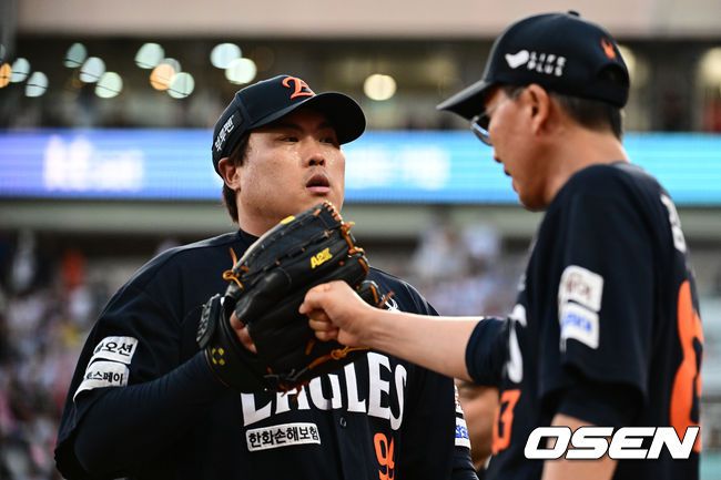 20일 오후 수원 KT위즈파크에서 ‘2025 신한 SOL Bank KBO리그’ KT 위즈와 한화 이글스의 경기가 열렸다. 홈팀 KT는 소형준, 방문팀 한화는 류현진을 선발로 내세웠다. 5회말 무실점으로 이닝을 마친 한화 선발 류현진이 더그아웃으로 향하고 있다. 2025.07.20 /cej@osen.co.kr