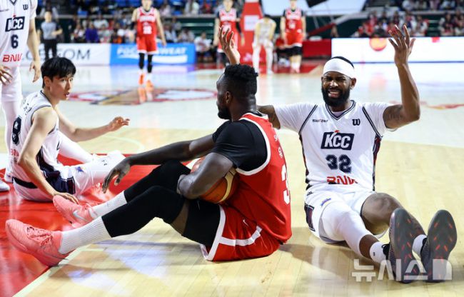 [서울=뉴시스] 최진석 기자 = 13일 서울 송파구 잠실학생체육관에서 열린 2025-2026 KBL 프로농구 서울 SK 나이츠와 부산 KCC 이지스의 경기. KCC 드완 에르난데스가 U파울을 지적당한 후 아쉬워하고 있다. 해당 U파울은 파울챌린지를 통해 일반파울로 정정되었다. 2025.10.13. myjs@newsis.com [사진 영상 제보받습니다] 공감