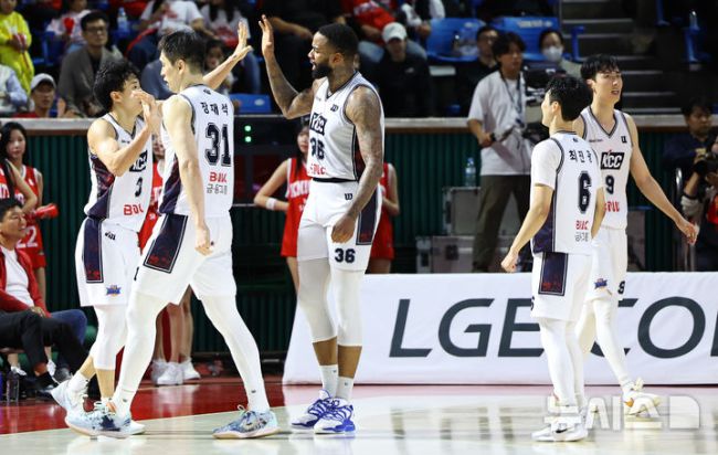 [서울=뉴시스] 최진석 기자 = 13일 서울 송파구 잠실학생체육관에서 열린 2025-2026 KBL 프로농구 서울 SK 나이츠와 부산 KCC 이지스의 경기. KCC 허웅이 득점 후 앤드원을 얻어 내며 기뻐하고 있다. 2025.10.13. myjs@newsis.com [사진 영상 제보받습니다] 공감언론 뉴시스가 독자 여러분의 소중한 제보를 기다립니다. 뉴스