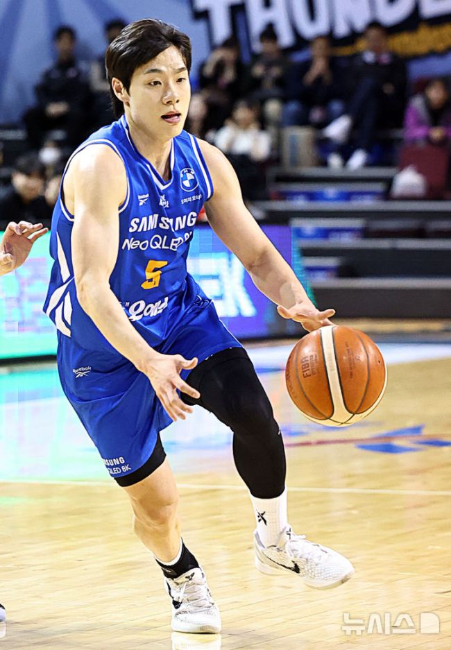 [서울=뉴시스] 최진석 기자 = 3일 서울 송파구 잠실실내체육관에서 열린 2025-2026 KBL 프로농구 울산 현대모비스와 서울 삼성의 경기, 삼성 한호빈이 돌파를 하고 있다. 2025.11.03. myjs@newsis.com [사진 영상 제보받습니다] 공감언론 뉴시스가 독자 여러분의 소중한 제보를 기다립니다. 뉴스 가치나 화제성이 있다고 판단되는 사진