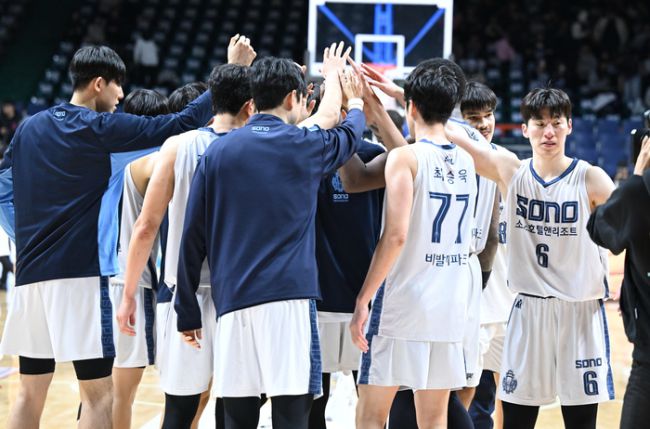 요동치는 프로농구 하위권 중위권있던 현대모비스, KT ‘하락세’ 하위권있던 소노, 한국가스공사 ‘상승세’ 봄농구 향한 전쟁 본격 시작 고양 소노 선수들이 부산 사직체육관에서 열린 2025~26 LG전자 프로농구 2라운드 부산 KCC전 승리 후 세리머니를 하고 있다. 사진 | KBL 중위권에 자리했던 울산 현대모비스와 수원 KT가 하락세다. 반면 하위권이던