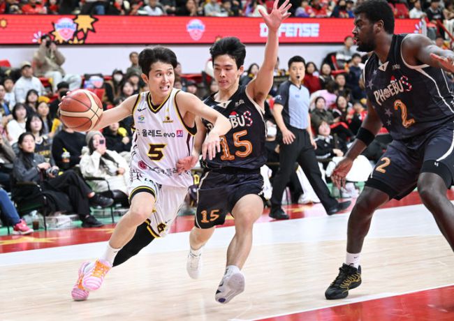 [서울=뉴시스] 프로농구 창원 LG의 양준석(왼쪽 1번째). (사진=KBL 제공) [서울=뉴시스] 하근수 기자 = 프로농구 창원 LG가 울산 현대모비스를 꺾고 천적 관계를 입증했다. LG는 31일 울산 동천체육관에서 열린 현대모비스와의 2025~2026시즌 LG전자 프로농구 정규리그 원정 경기에서 71-68로 이겼다. 승리한 1위 LG(19승 7패)는 2위