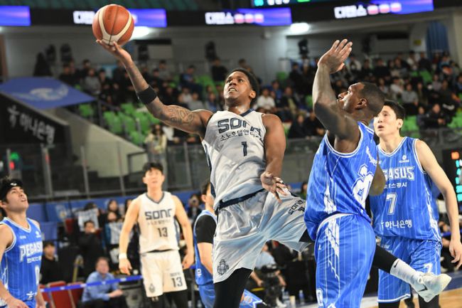 [서울=뉴시스] 프로농구 고양 소노의 네이던 나이트. (사진=KBL 제공) *재판매 및 DB 금지 [서울=뉴시스] 김진엽 기자 = 프로농구 고양 소노가 대구 한국가스공사를 상대로 한 상승세를 이어갔다. 소노는 5일 오후 7시 대구체육관에서 열린 한국가스공사와의 2025~2026시즌 LG전자 프로농구 정규리그 원정 경기에서 77-76 완승을 거뒀다. 11승1