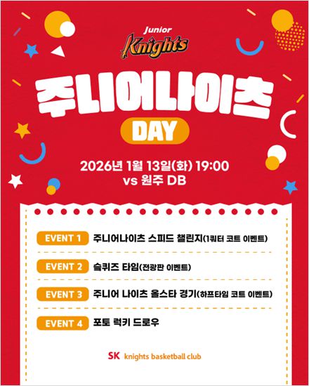 SK, 13일 DB전서 ‘주니어 나이츠 데이’ 연다… 하프타임에 올스타 경기도