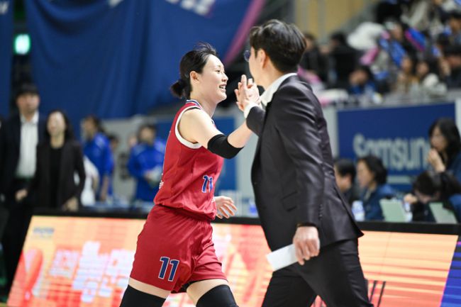 강이슬 맹활약→KB 분위기 반전 위기의 팀을 구해낸 베테랑 꾸준한 활약, 강이슬의 가치 KB, 연승 도전 나선다 강이슬이 김완수 감독과 하이파이브를 하고 있다. 사진 | WKBL 위기의 순간 팀을 구해내는 것이 베테랑의 숙명이라 했다. KB스타즈 강이슬(32)이 그 역할을 완벽히 수행했다. 판정 불만에 따른 징계 여파로 자칫 가라앉을 수 있었던 팀 분위기를