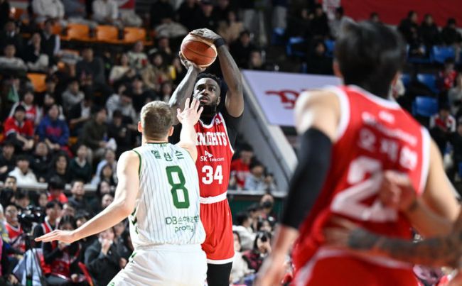 [서울=뉴시스] 프로농구 서울 SK의 자밀 워니. (사진=KBL 제공) *재판매 및 DB 금지 [서울=뉴시스] 김진엽 기자 = 프로농구 서울 SK가 원주 DB를 28점 차로 대파했다. SK는 13일 오후 7시 잠실학생체육관에서 열린 DB와의 2025~2026시즌 LG전자 프로농구 정규리그 홈 경기에서 93-65 대승을 거뒀다. 18승13패가 된 SK는 4위