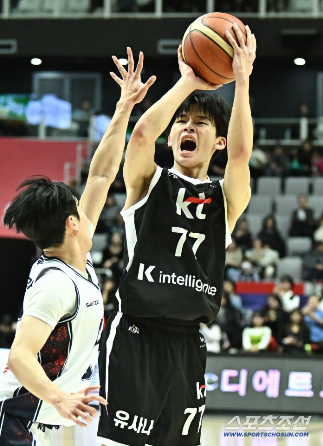 14일 수원 KT소닉붐 아레나에서 프로농구 수원 KT와 부산 KCC의 경기가 열렸다. KT 강성욱이 KCC 수비를 제치며 슛을 시도하고 있다. 수원=송정헌 기자songs@sportschosun.com/2026.01.14/ 수원 KT의 미래 강성욱(23)은 강동희(61)의 아들로만 기억되고 싶은 마음이 없었다. 강성욱은 대한민국 농구 최전성기의 주역이었던 강