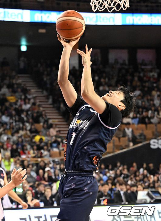 18일 서울 잠실실내체육관에서 2025~2026시즌 LG전자 프로농구 올스타전이 열렸다. 팬 투표와 선수단 투표, 감독 추천 선수로 이름을 올린 KBL 스타 24명이 유기상(LG)을 앞세운 '팀 브라운', 이정현(소노)이 선봉에 서는 '팀 코니'로 나뉘어 대결한다. 2쿼터 팀 브라운 유기상이 슛을 시도하고 있다. 2026.01.18 /sunday@osen.