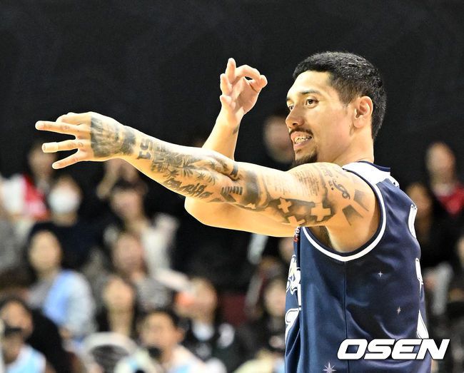 18일 서울 잠실실내체육관에서 2025~2026시즌 LG전자 프로농구 올스타전이 열렸다. 팬 투표와 선수단 투표, 감독 추천 선수로 이름을 올린 KBL 스타 24명이 유기상(LG)을 앞세운 '팀 브라운', 이정현(소노)이 선봉에 서는 '팀 코니'로 나뉘어 대결한다. 팀 브라운 알바노가 골을 성공시키고 세리머니를 하고 있다. 2026.01.18 /sunday