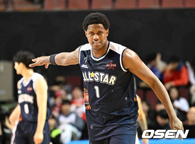 18일 서울 잠실실내체육관에서 2025~2026시즌 LG전자 프로농구 올스타전이 열렸다. 팬 투표와 선수단 투표, 감독 추천 선수로 이름을 올린 KBL 스타 24명이 유기상(LG)을 앞세운 '팀 브라운', 이정현(소노)이 선봉에 서는 '팀 코니'로 나뉘어 대결한다. 4쿼터 팀 브라운 나이트가 슛을 성공시키고 환호하고 있다. 2026.01.18 /sunday