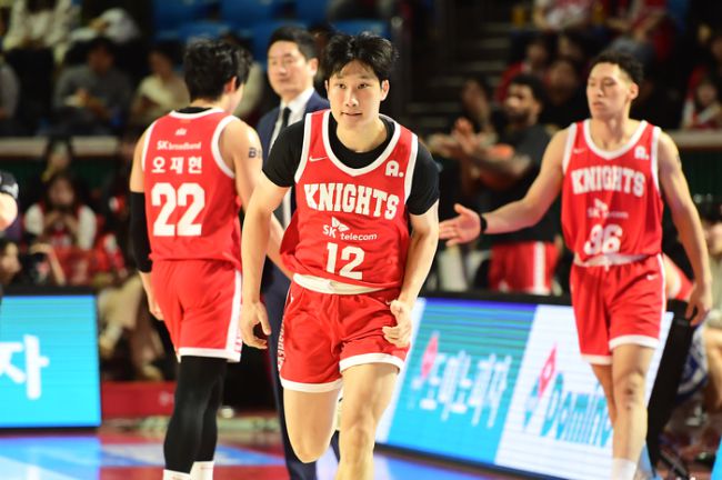 서울 SK 안성우. 사진 | KBL “유기상, 양준석 형이 뭘 잘하는지 제가 제일 잘 아는 것 같아요.” 상대를 간파하기 위해선 상대를 잘 아는 게 중요하다. 연세대학교 출신 서울 SK 신인 안성우(23)는 모교 선배 LG 유기상(25)·양준석(25)을 철벽 수비로 꽁꽁 묶더니 이렇게 말했다. 후배의 호기로운 포부이자 이유 있는 자신감이다. 지난해 신인 드