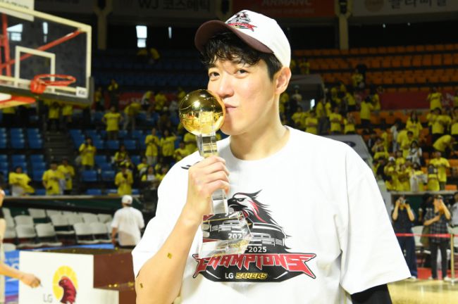2024~2025시즌 챔프전 MVP를 수상한 허일영. 사진제공=KBL 23일 KCC전 수훈선수 인터뷰를 하는 허일영. 사진제공=KBL '불혹에 그런 기록을?' 흔히 스포츠 세계에서 '불혹(40세)'은 현역 생활 마지노선으로 통용된다. '불혹'이 되기 전 은퇴하는 게 다반사이고, 간혹 '불혹'을 넘기면 존재감만으로도 귀감이 되는 것에 만족하기 일쑤다. 평생