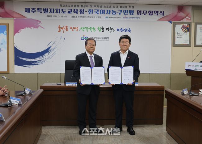 제주 포함 전국 8개 시도 교육청과 농구 교육 협력 확대 WKBL이 제주교육청과 ‘학교스포츠클럽 활성화’ 업무 협약 체결을 했다. 사진 | WKBL WKBL은 18일 오전 제주특별자치도교육청 2층 상황실에서 ‘학교스포츠클럽 활성화 및 여학생 스포츠 참여 확대를 위한’ 업무 협약을 체결했다. 이날 협약식에는 WKBL 신상훈 총재와 제주특별자치도교육청 김광수