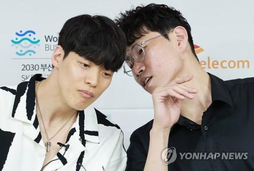 (서울=연합뉴스) 홍해인 기자 = 자유계약선수(FA)로 2022~2023 시즌 KBL 프로농구 종료 뒤 서울 SK 나이츠로 이적한 오세근(오른쪽)이 8일 오후 서울 강남구 KBL센터에서 SK 나이츠 가드 김선형과 함께 기자회견을 하기 앞서 대화하고 있다. 대학 시절 오세근과 김선형이 합을 맞춘 중앙대는 2006년 11월부터 2008년 11월까지 52연승이라