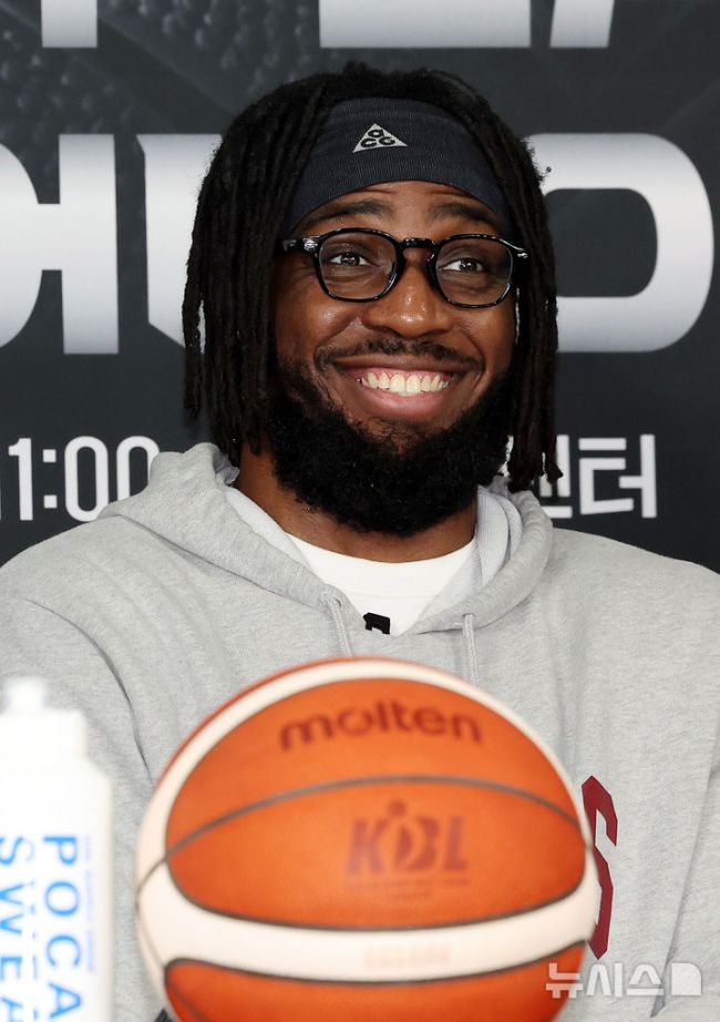 [서울=뉴시스] 김명년 기자 = 서울 SK 자밀워니가 10일 오전 서울 강남구 KBL센터에서 열린 2024-2025 KCC 프로농구 플레이오프 미디어데이에서 거취 관련 물음에 웃음을 지어보이고 있다. 2025.04.10. kmn@newsis.com [서울=뉴시스] 하근수 기자 = 프로농구 서울 SK의 전희철 감독이 통합우승을 달성한 뒤 어떻게든 자밀 워니를