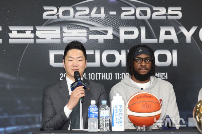 [서울=뉴시스] 김명년 기자 = 전희철 서울 SK 감독이 지난 10일 오전 서울 강남구 KBL센터에서 열린 2024-2025 KCC 프로농구 플레이오프 미디어데이에서 출사표를 던지고 있다. 2025.04.10. kmn@newsis.com [서울=뉴시스] 김진엽 기자 = 2024~2025시즌 KCC 프로농구 4강 플레이오프(PO)가 펼쳐진다. 5전3승제로 진
