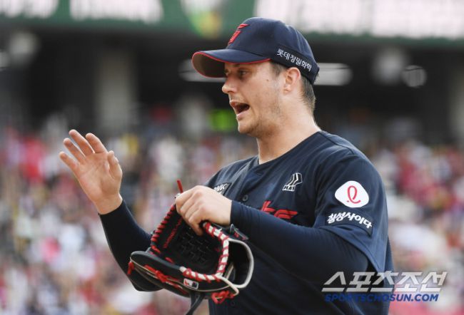 6일 광주 기아 챔피언스필드에서 열린 롯데-KIA전. 롯데 선발투수 데이비슨이 1회를 무실점으로 마친 후 기뻐하고 있다. 광주=정재근 기자 cjg@sportschosun.com/2025.7.6/ 인터뷰에 임한 롯데 유강남. 김영록 기자 폰세-와이스(이상 한화 이글스) 같은 원투펀치를 꿈꾸지 않는 사령탑이 있을까. 모든 투수가 에이스처럼 던질 순 없다. 하지