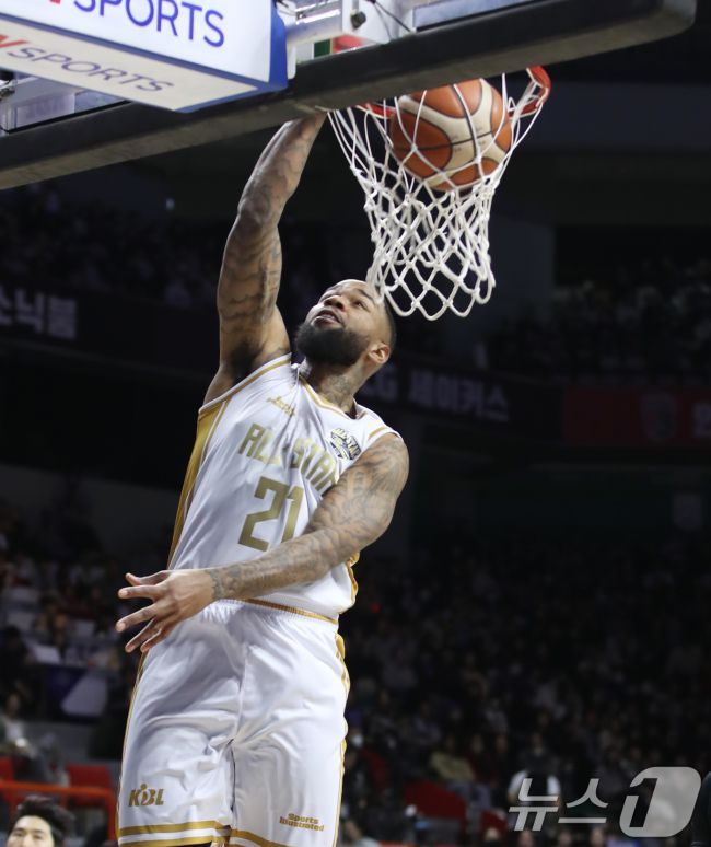 울산 현대모비스 시절 숀 롱. 2025.1.19/뉴스1 ⓒ News1 윤일지 기자 (서울=뉴스1) 이상철 기자 = 프로농구 부산 KCC가 'KBL 경력'이 있는 숀 롱(208㎝)과 드완 에르난데스(208㎝)를 영입했다. KCC 구단은 29일 "숀 롱과 에르난데스와 계약, 2025-26시즌 외국인 선수 구성을 마쳤다"고 밝혔다. 2023-24시즌 챔피언결정전