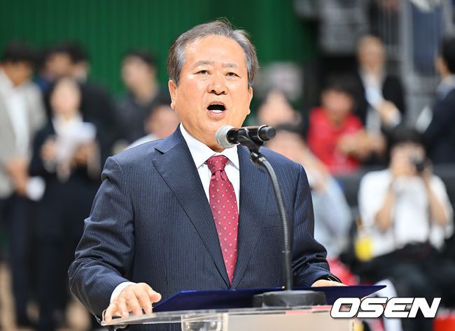 16일 부산 사직실내체육관에서 BNK금융 2025~2026 여자프로농구 부산 BNK와 인천 신한은행의 경기가 열린다. ‘디펜딩 챔피언’ 부산 BNK와 인천 신한은행의 2025~2026 공식 개막전이다. 신상훈 WKBL 총재가 개막 선언을 하고 있다. 2025.11.16 / foto0307@osen.co.kr