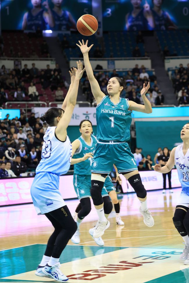 [서울=뉴시스] 여자프로농구 부천 하나은행 박소희. (사진=WKBL 제공) *재판매 및 DB 금지 [서울=뉴시스] 하근수 기자 = 여자프로농구 부천 하나은행이 인천 신한은행을 격파하고 5연승을 달렸다. 하나은행은 8일 부천체육관에서 열린 신한은행과의 BNK금융 2025~2026시즌 여자프로농구 정규리그 홈 경기에서 69-58로 이겼다. 이날 승리로 1위 하