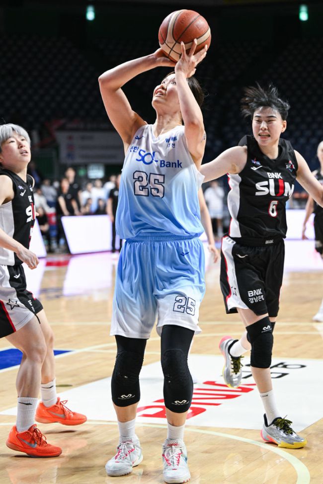 [서울=뉴시스] 여자프로농구 인천 신한은행의 미마 루이. (사진=WKBL 제공) *재판매 및 DB 금지 [서울=뉴시스] 김진엽 기자 = 여자프로농구 인천 신한은행이 2차 연장 접전 끝에 부산 BNK를 누르고 9연패에서 탈출했다. 신한은행은 18일 오후 2시 부산사직실내체육관에서 열린 BNK와의 BNK금융 2025~2026시즌 여자프로농구 정규리그 원정 경기
