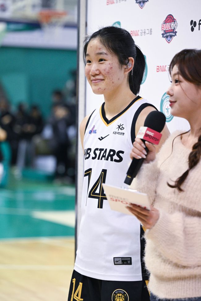 사진=WKBL 제공 “박지수 언니에게 고맙죠.” 소포모어 징크스는 없다. 프로 2년차 KB국민은행 송윤하는 25일 부천체육관에서 끝난 BNK금융 2025~2026 여자프로농구 4라운드 원정경기에서 15분 27초를 뛰며 20점 2리바운드를 기록, KB의 87-75 승리를 이끌었다. 그는 “(김완수) 감독님 말씀대로 잘 준비한 게 좋은 결과로 이어졌다”고 미소