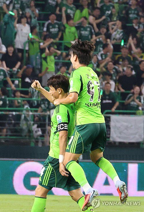 (전주=연합뉴스) 김동철 기자 = 8일 전주월드컵경기장에서 열린 하나은행 K리그1 2025 전북 현대와 FC안양의 경기에서 전북 박진섭(왼쪽)이 선취골을 넣고서 동료와 기뻐하고 있다. 2025.8.8 sollenso@yna.co.kr ▶제보는 카카오톡 okjebo ▶연합뉴스 앱 지금 바로 다운받기~ ▶네이버 연합뉴스 채널 구독하기 <저작권자(c) 연합뉴스,