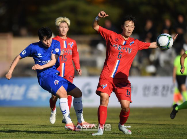 화천 KSPO 최유정이 15일 화천생활체육공원 주경기장에서 열린 2025 WK리그 챔피언결정전 서울시청과 2차전에서 슈팅을 날리고 있다. 2025.11.15. 화천 | 최승섭기자 thunder@sportsseoul.com [기사제보 news@sportsseoul.com] Copyright ⓒ 스포츠서울&sportsseoul.com