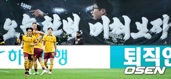 2025 하나은행 코리아컵 전북FC와 광주FC의 결승전이 6일 서울 마포구 서울월드컵경기장에서 열렸다. 시민구단 광주는 사상 첫 코리안컵 우승에 도전, 전북은 올해 K리그1 우승에 이어 두 번째 더블을 노린다. 후반 광주 프리드욘슨이 헤더로 동점골 만든 뒤 동료들과 기뻐하고 있다. 2025.12.06 /cej@osen.co.kr