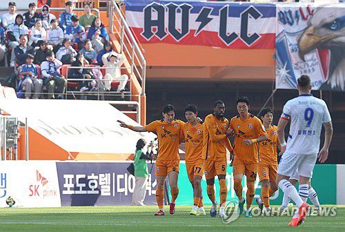 (서귀포=연합뉴스) 박지호 기자 = 7일 오후 서귀포시 제주월드컵경기장에서 하나은행 K리그 2025 승강 PO 2차전 제주SK와 수원삼성의 경기 전반 제주 김승섭이 선제골을 성공시킨 뒤 동료와 환호하고 있다. 2025.12.7 jihopark@yna.co.kr ▶제보는 카카오톡 okjebo ▶연합뉴스 앱 지금 바로 다운받기~ ▶네이버 연합뉴스 채널 구독하기